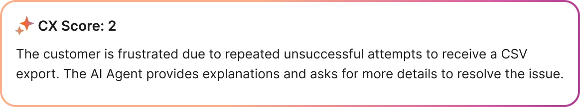 The result: CX Score applies the same criteria a trained support professional would use, not generic LLM assumptions.