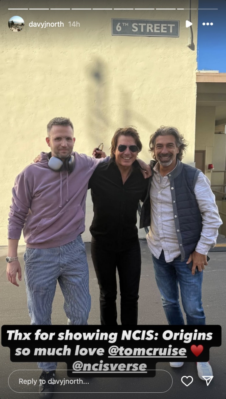 “While on the [Paramount] lot, Tom Cruise stopped by the set of NCIS: Origins to say hi!” the NCISVerse posted to its official Instagram account on Wednesday. The “Mission: Impossible” star’s visit appears to be a serendipitous encounter, though TVLine has reached out to “NCIS: Origins” reps for comment.